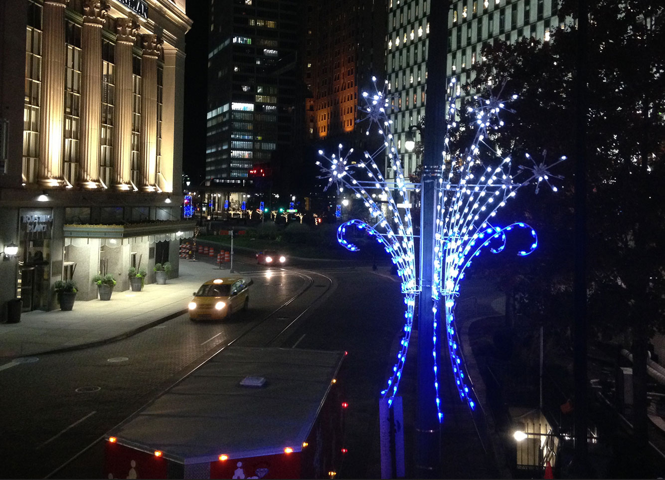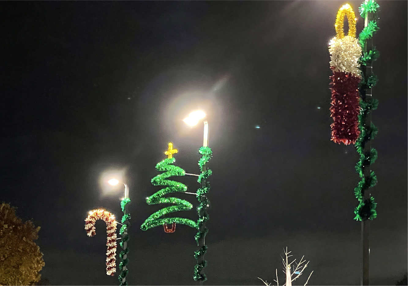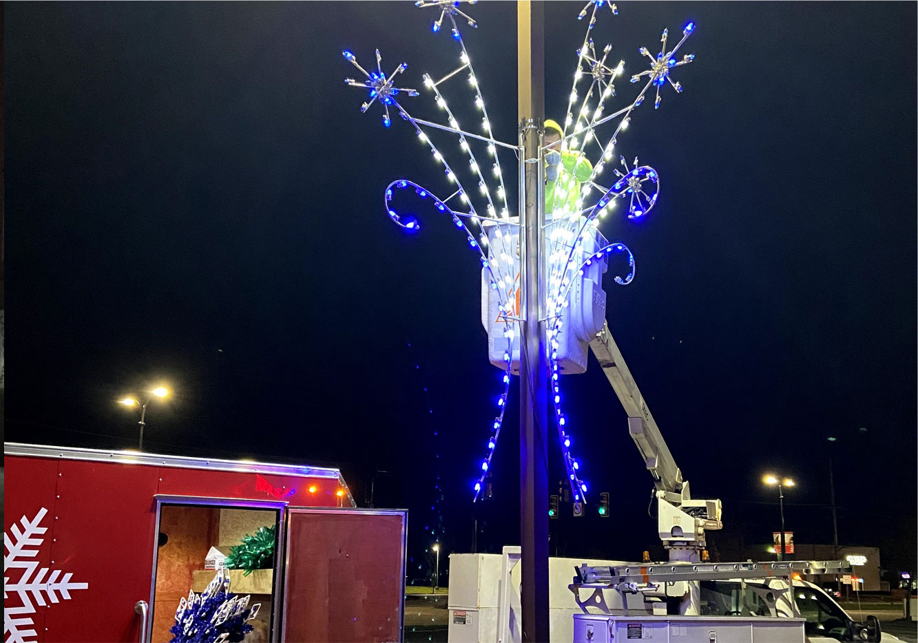 Rented décor dropped off and picked up at the customer’s location or DPW. Installation and removal by customer/city workers. Save money by providing your own labor.